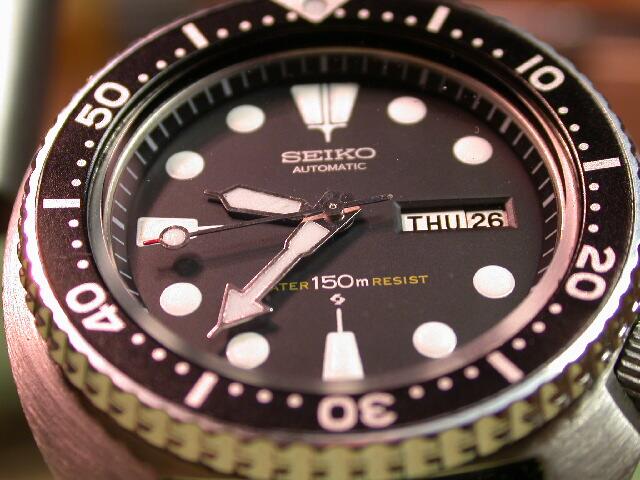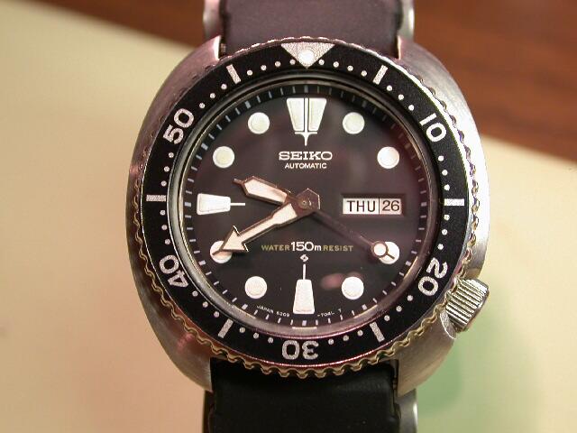 This first one is a totally resto of a 1986 6306-7001. The dial was so bad, the markers where almost black. I`ve come up with a new way to do these, which restores the lumi almost to a like new look, as in the thickness, and apearance of the lumi.