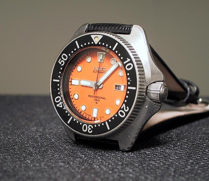 The diver is about 35mm, but most of that is the case, and as much as I'd like, it's just too small to wear. This one I'm guessing is from 1977. It still glows suprisingly well and has a nice domed crystal.
