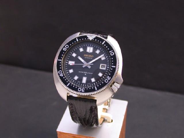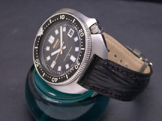 Extra time and care was taken on reluming the dial. There are two differences that denote the watches charactor included on the dial. The first is the use of a gold Seiko emblem below 12 o`clock, and the use of a black date wheel, also donated from the 6119.