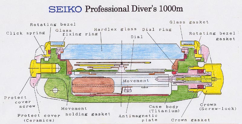The detail structure of Professional 1000m diver's watch is shown in the following figure.