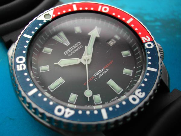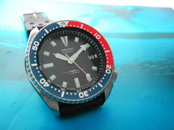 But I think like people, every watch deserves a second chance. This diver is actually a pretty uncommon 7002-700J, a Japan-made version of the 7002 150m diver with a pepsi bezel. When I saw it on ebay, I took a chance and won the auction. After sendiing my money to Thailand (luckily the seller wasn't Sophon) and not hearing anything for a few weeks, I was about to chalk it up as a transaction gone bad. Then the other day it showed up at my door.